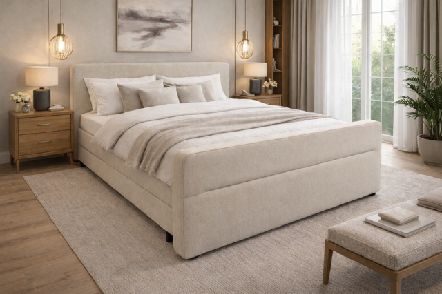 Dit zwevende Voetbord bevat hetzelfde horizontale accent als het hoofdbord, welke een nog mooiere en strakkere uitstraling geven aan de boxspring. Daarnaast kunt u makkelijk onder het bed door komen, doordat alles zwevend van de grond af staat en op mooie 15cm hoge poten.