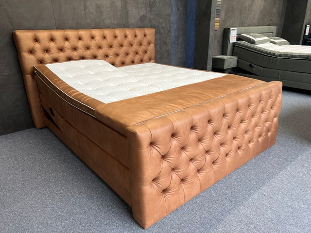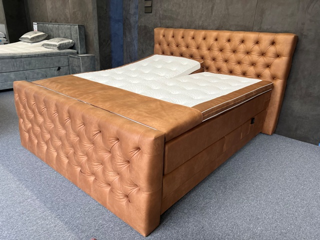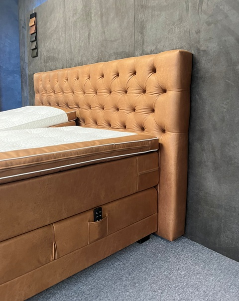 Deze Boxen bestaan uit een Pocketveringkern van wel 500 Pockets p/m2 en zijn ong. 20 cm dik! Deze boxen zijn stevig aan comfort. Gewichtsklasse bedraagt wel 150kg per box. Deze Boxen staan op vuren houten onderframes. *De boxen worden aangedreven door 2x extra zware motoren van 6500 Newton op zowel het hoofd- als voeteinde met draadloze afstandbedieningen! Op deze boxen zitten geen voetbeugels, omdat alles gestoffeerd is met antislip spiegels, zodat de matras perfect op zijn plaats blijft.