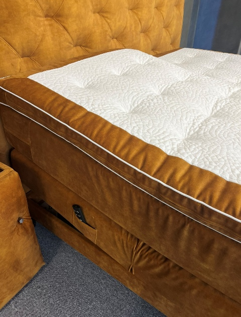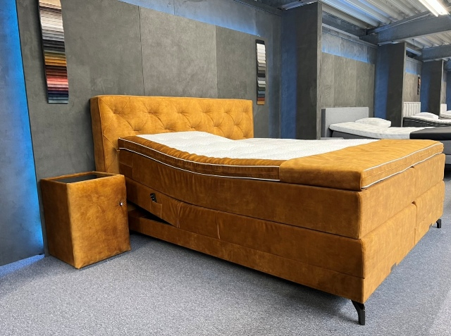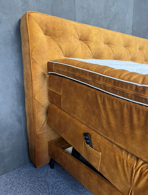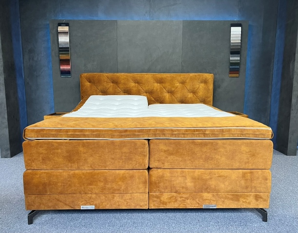 Deze Boxen bestaan uit een Pocketveringkern van wel 500 Pockets p/m2 en zijn ong. 20 cm dik! Deze boxen zijn stevig aan comfort. Gewichtsklasse bedraagt wel 150kg per box. Deze Boxen staan op vuren houten onderframes. *De elektro boxen worden aangedreven door 2x extra zware motoren van 6500 Newton op zowel het hoofd- als voeteinde met draadloze afstandbedieningen! Op deze boxen zitten geen voetbeugels, omdat alles gestoffeerd is met antislip spiegels, zodat de matras perfect op zijn plaats blijft.