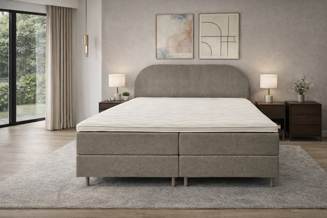 De Queen Nova Boxspring is een complete 2-persoons Boxspring met een rustige elegante warme uitstraling, bestaande uit:
