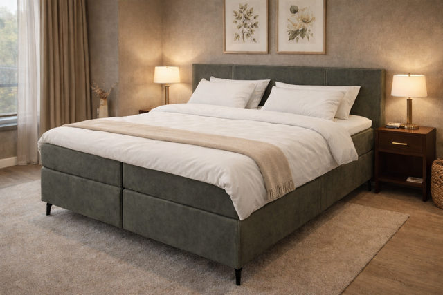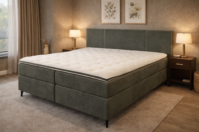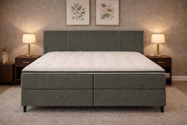 Op deze verende boxen worden stevige meegestoffeerde pocketvering matrassen gecombineerd waarin 500 pockets p/m2 zitten, verdeeld over 7 comfortzones. De pockets zijn afgedekt met een hoogwaardig koudschuim afdeklaag voor een goede ventilatie en vochtregulatie te creëeren. Ook de matras is goed voor een gewichtsklasse van 120 kg. Dikte van de matras is 21cm en ook deze zijn gestoffeerd met antislip spiegels