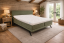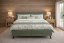 Strak gestoffeerd zwevend hoofdbord met mooie rondingen in een mooie frisse groene kleur. Dit hoofdbord is ook extra plat om zo weinig mogelijk ruimte in de kamer te verliezen, maar toch de uitstraling van een hoofdbord te hebben.